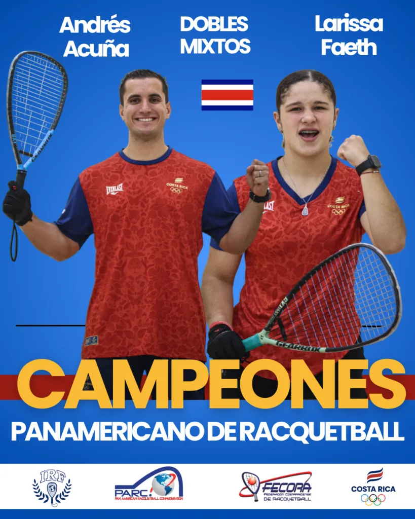 El binomio deportivo formado por Andrés Acuña y Larissa Faith se clasifica una vez más Costa Rica En la cima del raquetbol continental luego de conquistar el título de dobles mixtos en el Campeonato Panamericano de Guatemala.