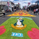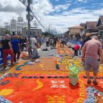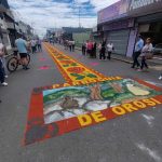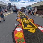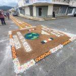 Para esta actividad, diferentes congregaciones aceptan la responsabilidad de decorar las calles con diferentes razones religiosas.