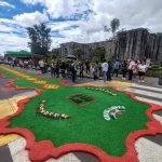 Un total de 18 bloques mostraron imágenes religiosas, marianas y agrícolas de aserrín y flores este año.