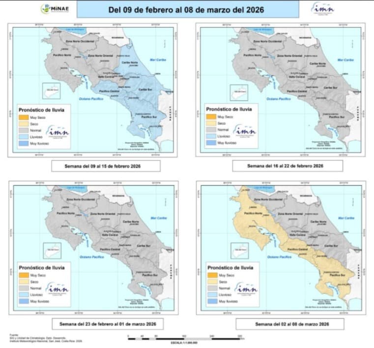 Sin embargo, se esperan lluvias en el Caribe y la Zona Norte, algunas de las cuales podrían llegar al Valle Central y sectores del Pacífico Central y Sur.