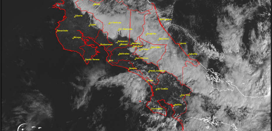 Se espera un patrón atmosférico estable para el Pacífico Central y el Pacífico Sur. Aún, No se descartan lluvias dispersas y locales durante el periodo de la tarde.