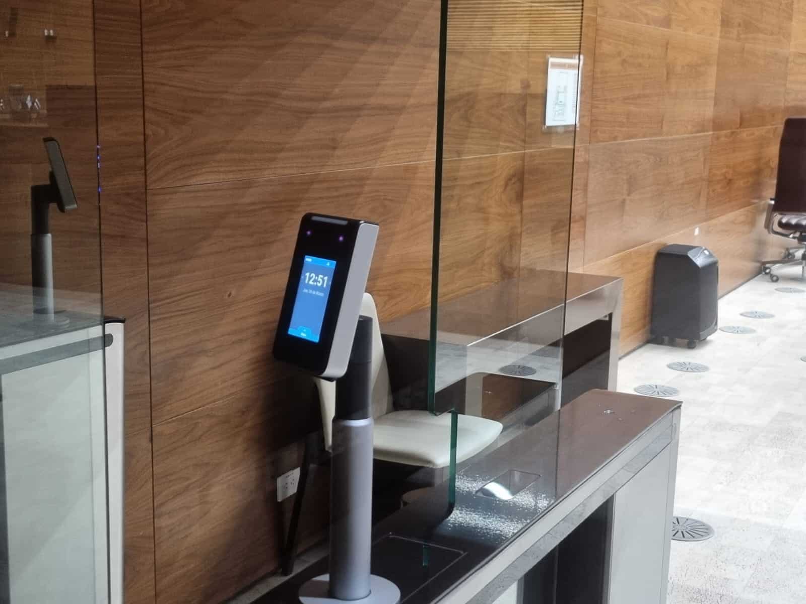 A la entrada del salón de actos se encontraba una máquina que controla la entrada y salida de los diputados a la asamblea.